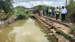 The Minister’s visit follows a viral video showing the destruction of the active rail line and its publication by the the media yesterday.