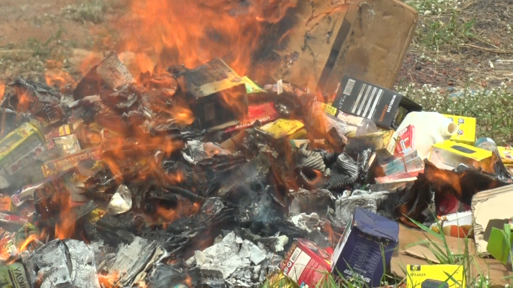 The items seized were burnt to avoid resurface on market.