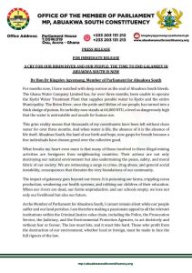 In a press statement titled “A CRY FOR OUR BIRIM RIVER AND OUR PEOPLE: THE TIME TO END GALAMSEY IN ABUAKWA SOUTH IS NOW,” Dr. Agyemang highlighted the severe environmental damage caused by galamsey, particularly its impact on the Birim River.