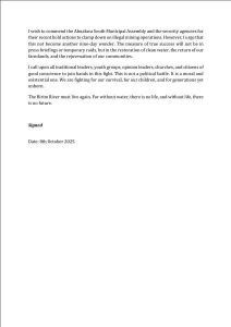 “The Birim River, once the pride and lifeline of our people, has turned into a thick sludge of poison. Its turbidity now stands at 64,000 NTU, a level so dangerously high that the water is untreatable and unsafe for human use,”he explained.