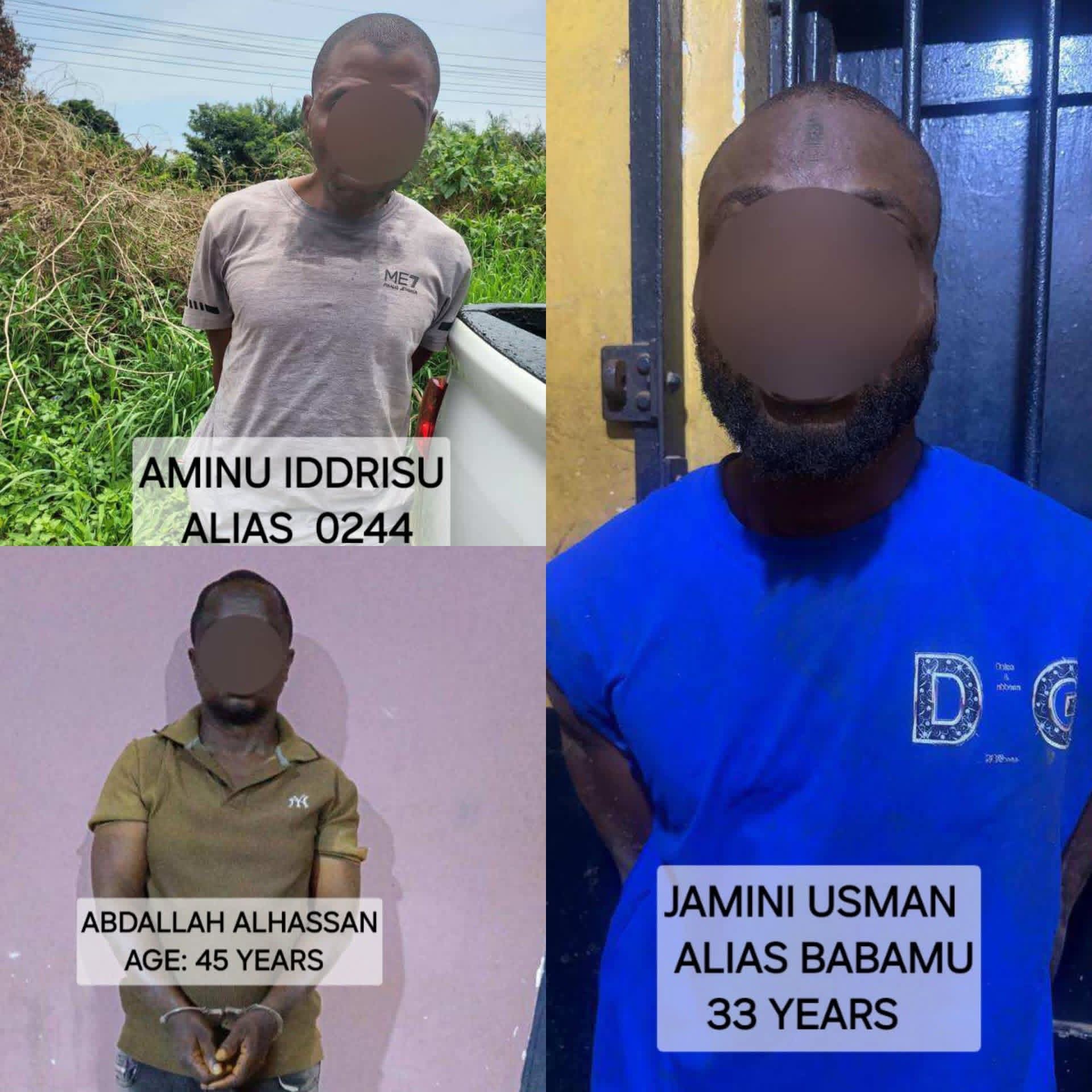 Suspects Abdalah Alhassan, Jemini Usman alias Babamu, Aminu Iddrisu alias 0244, and Daniel Debrah are currently in Police custody assisting investigation. Intensive efforts are underway to arrest suspect Mallam Aminu and other members of the gang who are on the run and also recover any remaining firearms in their possession,