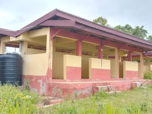 Although the people of Asekye selected the market’s location themselves, construction stalled after partial completion. The site currently includes 30 uncompleted storerooms and an unfinished 20-seater toilet facility.