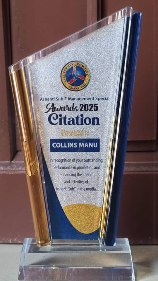 The Ashanti Sub-Transmission of the Electricity Company of Ghana (ECG) has honoured its Head of Public Relations, Mr Collins Manu, for his outstanding contribution to promoting the company’s activities and strengthening its public image through strategic media engagement.