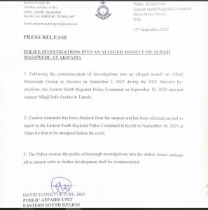According to a police statement signed by DSP David Fianko Okyere of the Eastern South Regional Police Public Relations Unit, Chief Azorka was arrested in Tamale on September 10, 2025, following the commencement of investigations into the incident.