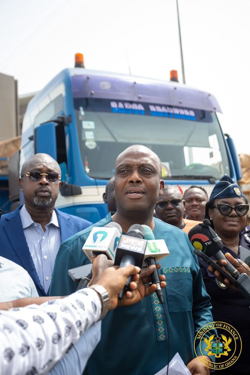 The Deputy Minister for Finance, Thomas Nyarko Ampem, has congratulated the Customs Division of the Ghana Revenue Authority (GRA) for intercepting 12 articulated trucks in a major enforcement operation along the Dawhenya–Tema Road, describing the action as a decisive step in protecting state revenue.