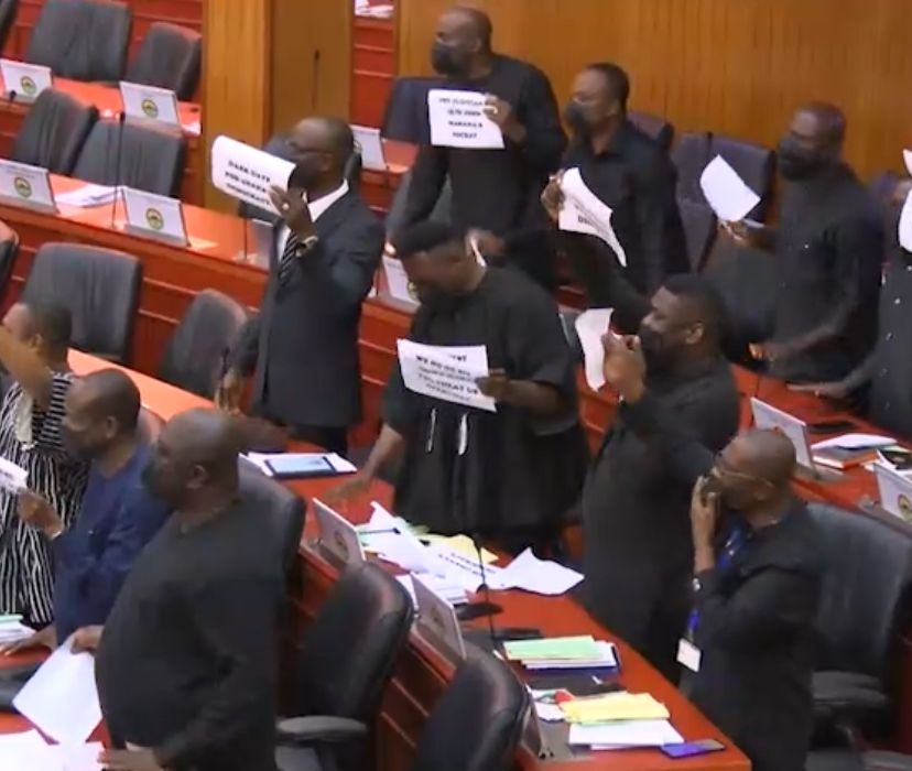 The announcement sparked strong reactions on the parliamentary floor today, with members of the New Patriotic Party (NPP), who constitute the Minority, breaking into patriotic songs including the national anthem.