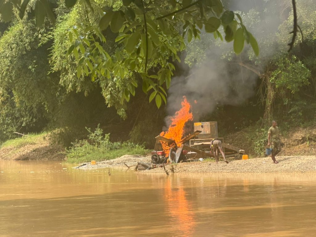 The operation was carried out lastnight following credible intelligence indicating that the suspects were actively engaged in illegal mining activities on the Birim River
