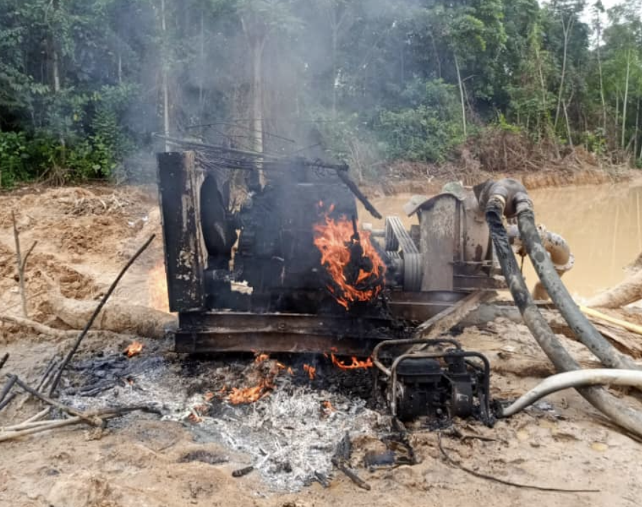 During the operation, the team seized five pump-action guns, 77 rounds of ammunition, and burnt three excavators used in the mining activities. Other equipment found at the site has been handed over to the Takoradi police for further investigation.