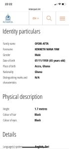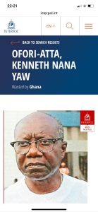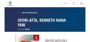 The Red Notice, published today, provides detailed identification of Ofori-Atta, describing him as a 65-year-old male, born on November 7, 1959, in Accra. He is noted to be 1.7 meters tall, with black hair and eyes, and fluent in both English and Twi.