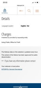 INTERPOL has indicated that he is wanted on charges of “Using Public Office for Profit.”