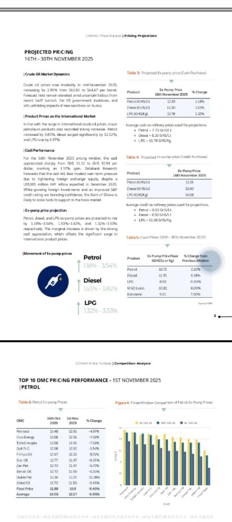 Fuel consumers should expect slight upward adjustments in petrol, diesel, and liquefied petroleum gas (LPG) prices beginning tomorrow, according to projections from the Chamber of Oil Marketing Companies (COPEC).