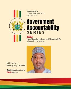 The Minister for the Interior and Member of Parliament for Asawase, Alhaji Mohammed Muntaka Mohammed, is set to launch the Government Accountability Series, a new initiative by the Presidency’s Communications Office, on Monday, July 14, 2025.