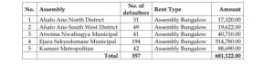• Atwima Nwabiagya Municipal: 41 defaulters—assembly bungalows—GH¢40,710