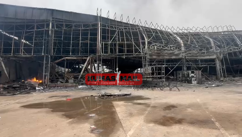 The devastating fire completely destroyed the mall, which housed several shops dealing in groceries, electronics, and household items.