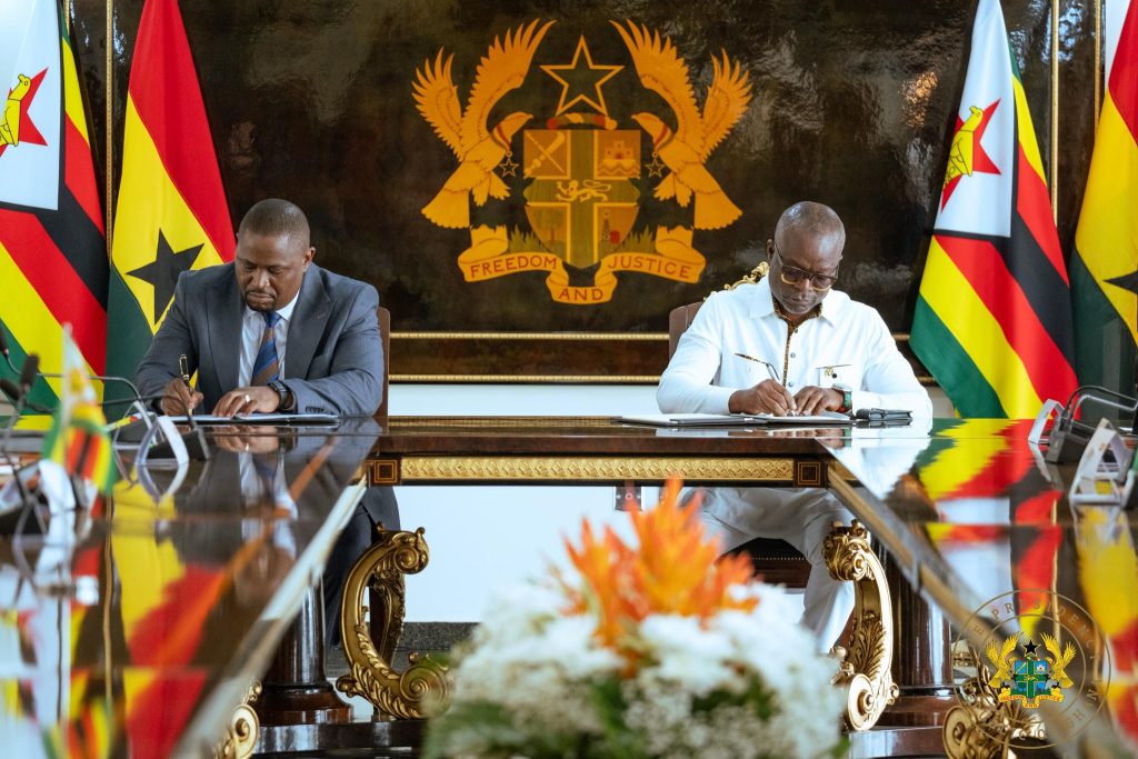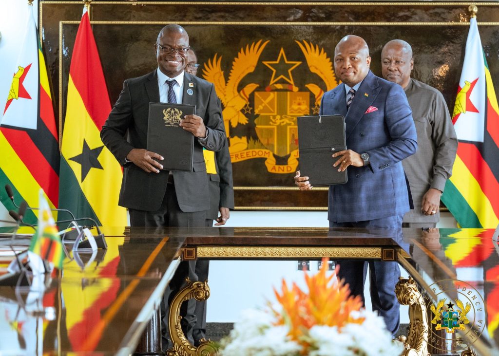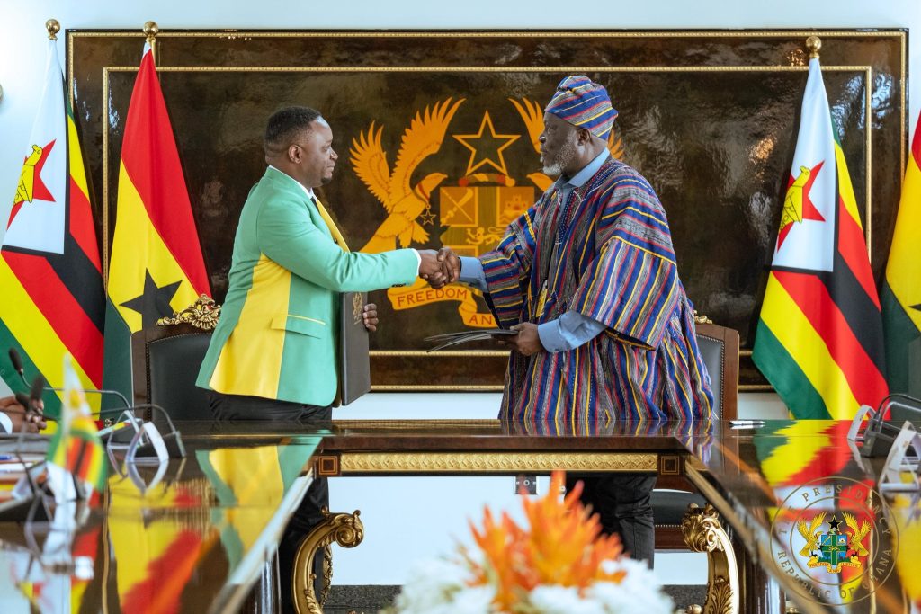 President of Ghana John Dramani Mahama and Emmerson Mnangagwa President of Zimbabwe have reaffirmed their commitment to deepening bilateral ties following the signing of multiple Memoranda of Understanding (MoUs) across key sectors.