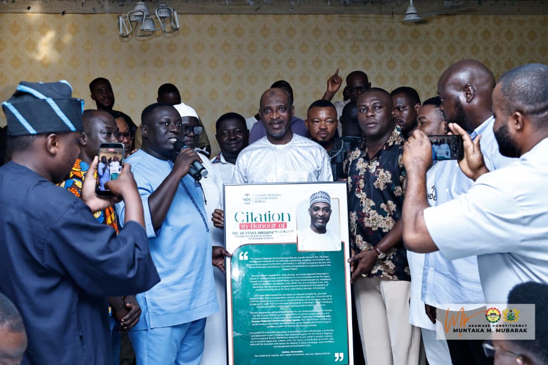 The Minister for the Interior and Member of Parliament for Asawase, Alhaji Muntaka Mohammed Mubarak, has been honoured with a citation by the Ashanti Regional Communications Bureau of the National Democratic Congress (NDC) in recognition of what the party described as his steadfast commitment and unwavering support in the Ashanti Region.