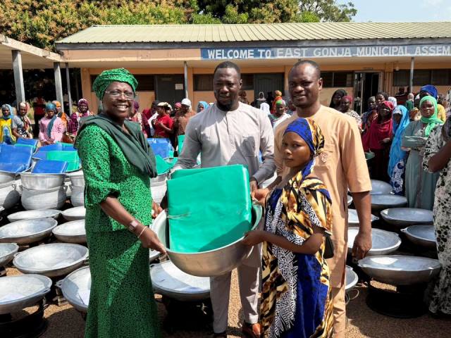Each gari processing trainee received a fryer, local stove, head cover and apron, while the rice processing beneficiaries were given tarpaulins, aluminium basins, dadesen, gloves, head covers and local stoves.