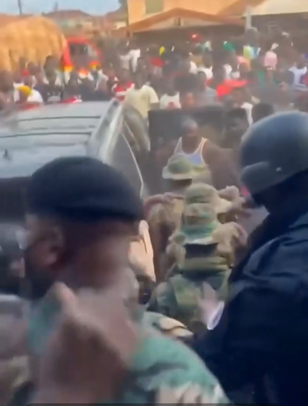 Video: Police rescue Soldiers from angry mob in Hwidiem after Anti-Galamsey operation